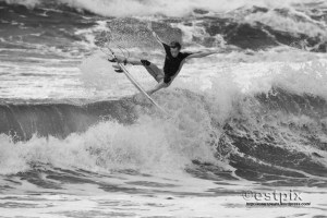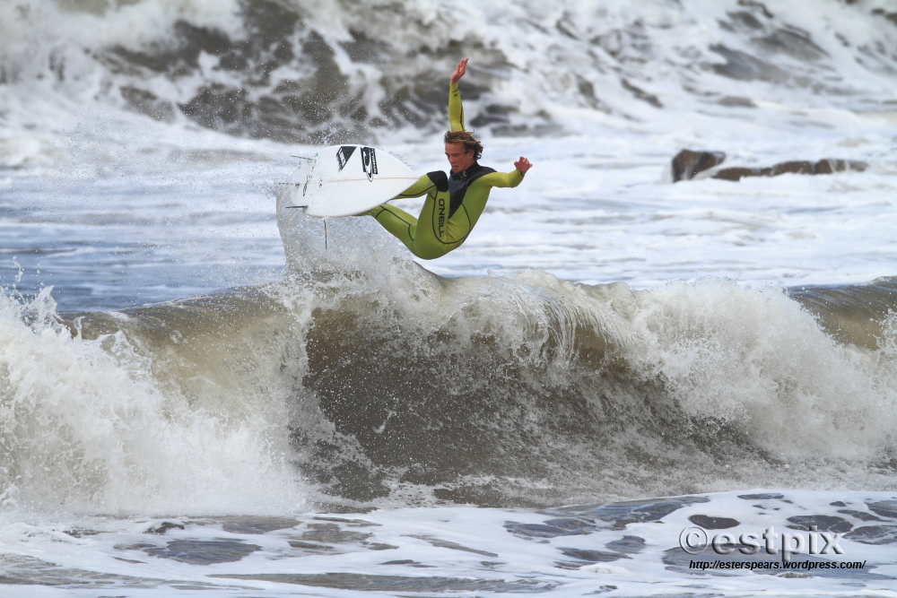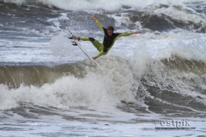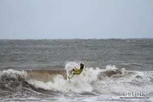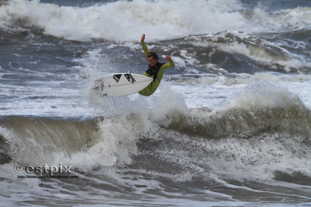 For surf photographers light is everything of course. That’s why these pix will never make it to print. Even though this is a rarely surfed, ‘ once a year’, semi-secret break (normally it only gets big and wild enough in the depths of winter) and the current British champion is ripping the brackish storm swell, there’s no light and therefore the images are flat looking.