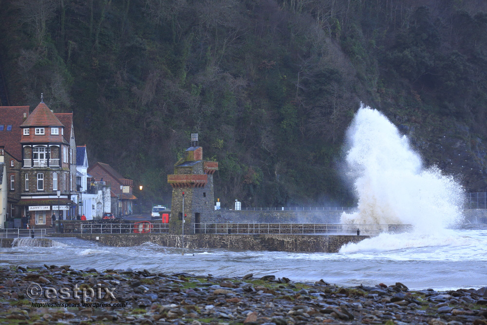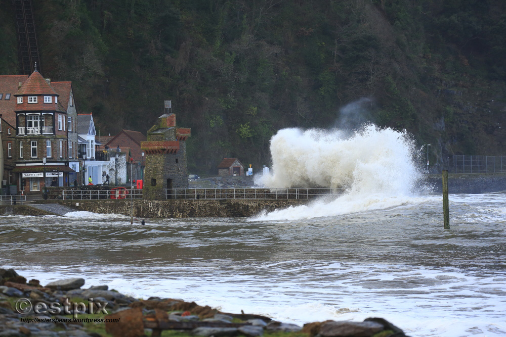 The bouys were going ballistic; pumping out all time numbers; 30 foot at 12 seconds. It was possibly the most anticipated swell of the social media age. The images and footage will keep us entertained through the dark days of January especially ‘depression monday’, ‘bankrupt tuesday’ and (my favourite) ‘alcoholic wednesday’. But anyway, this is what happened when the swell of the decade reached our little piece of secluded coast. The Rhenish Tower on Lynmouth harbour is probably 30 foot tall and was originally built to pump saltwater to a private bath c1860, when, interestingly it was considered as an eyesore (sorta like windturbines are today..). It was severely damaged in the 1952 flood and was rebuilt in 1954. You can click on the picture to make it look better if you want to.