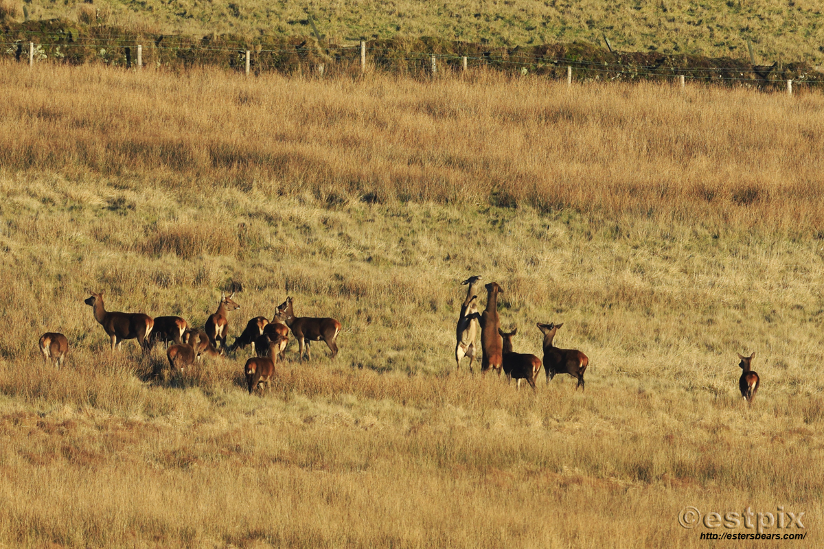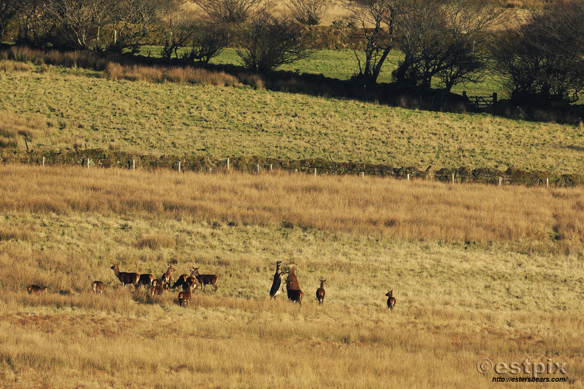 It’s fifty shades of brown on the moor at the moment and if you are lucky enough to get it ‘all lit up’ by some weak winter sunshine; the mood becomes magical. To cap off another great drive on the moor with the indomitable Neil Osmond of Experience Exmoor, we caught these two young ladies (red deer hinds),’dancing-in’ the new year. Wahooo! Happy New Year everyone, wishing you peace, health & plenty of ‘moments’. (If you click on the pic it becomes humongossly better).