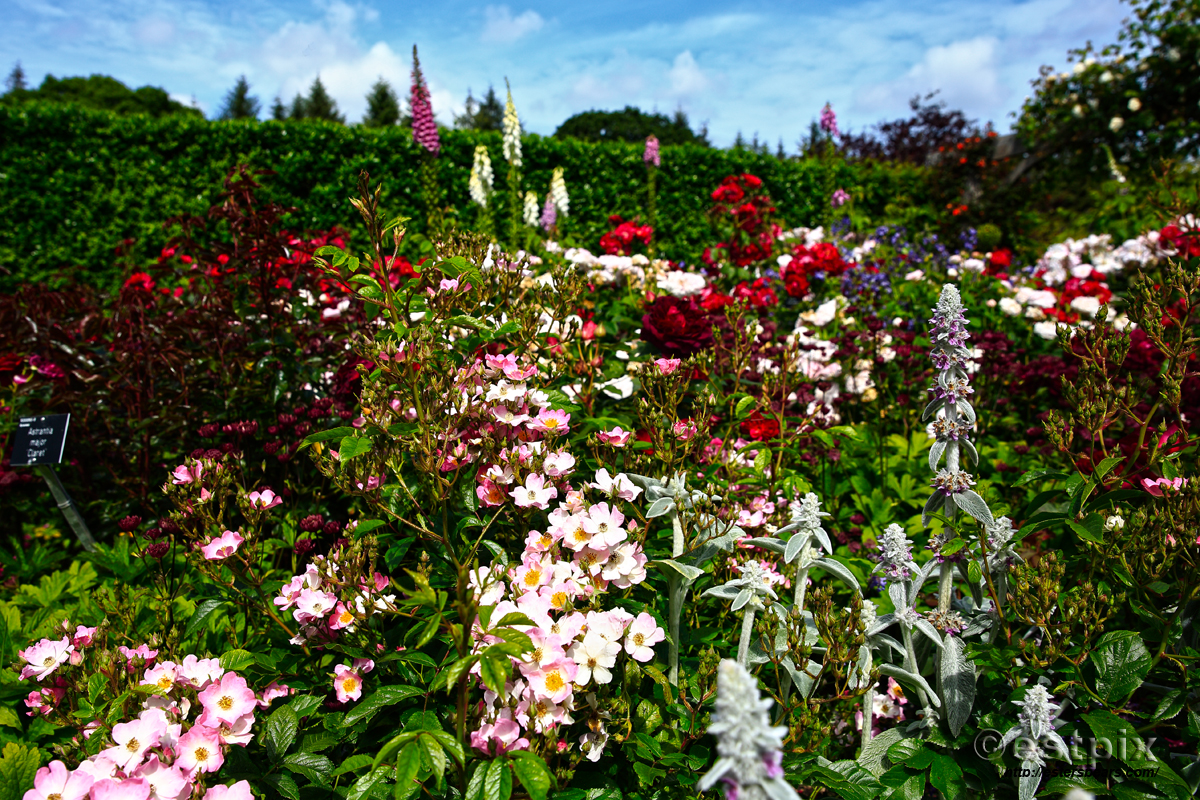 RHS Rosemoor that is, nestled in the woods near Torrington, North Devon. Normally I go in the spring, when I’m less busy at work and in need of an inspirational lift after an agriculturally barren winter. Today I was lucky enough to tag along with some friends under the auspice of developing my gardening round. Haha. Any excuse for a day off more like! I took the camera but the pictures cannot relate the sublime, pungent ecstasy of wandering through the rose garden, which is now in full bloom.