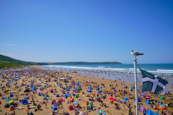 Summer in North Devon is such a bitter sweet experience. In my little village the population swells from about a thousand to 30 thousand, and this brings a strain on the resources and inevitably causes stress to visitors and locals alike. People who live in Cities can cope with traffic chaos, mass migration, queues and bad manners. We are used to lane courtesy, space, doing your own thing and empty beaches, like this …